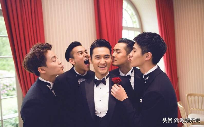 她们的婚礼最强亮点就是“最帅伴郎团”,由彭于晏、刘昊然、胡歌、马天宇组成,他们身着统一的黑西服风度翩翩,这颜值随手拍张照就是杂志大片,超级帅气养眼呢!