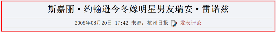 同年,24岁的斯嘉丽与男演员瑞安·雷诺兹宣布订婚,几个月后,两人在温哥华某度假胜地举办了婚礼,这是斯嘉丽第一次步入婚姻殿堂。