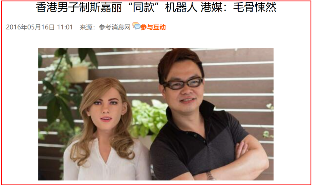 因为太红,还有一位香港男子花了38万港元,在学习机械人知识、机电学、电脑程式设计、最新三维打印技术,以及人体解剖学后,制作出了一个斯嘉丽同款机器人……
