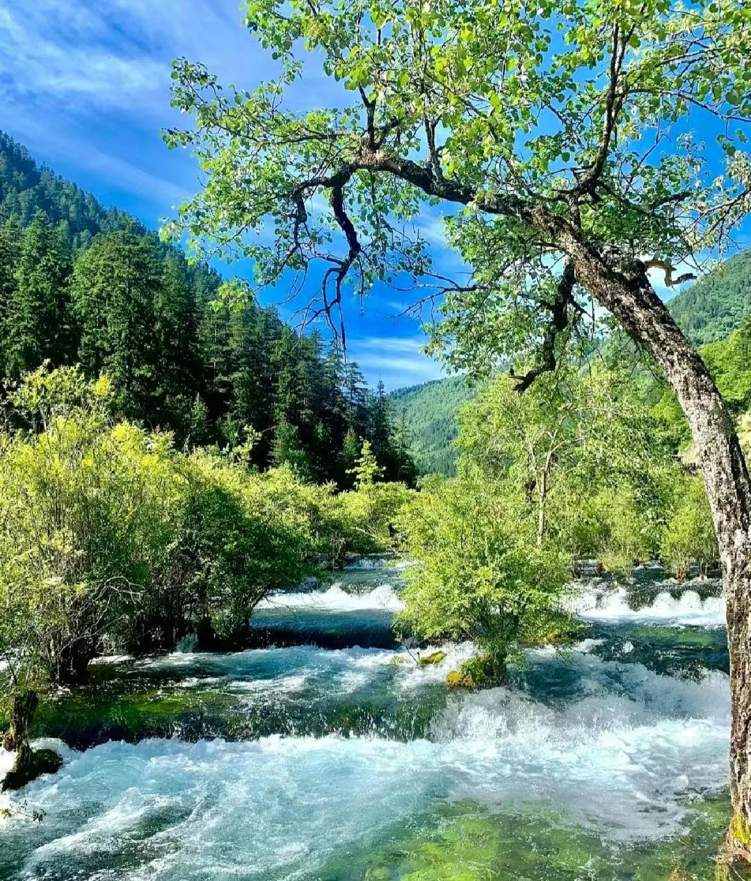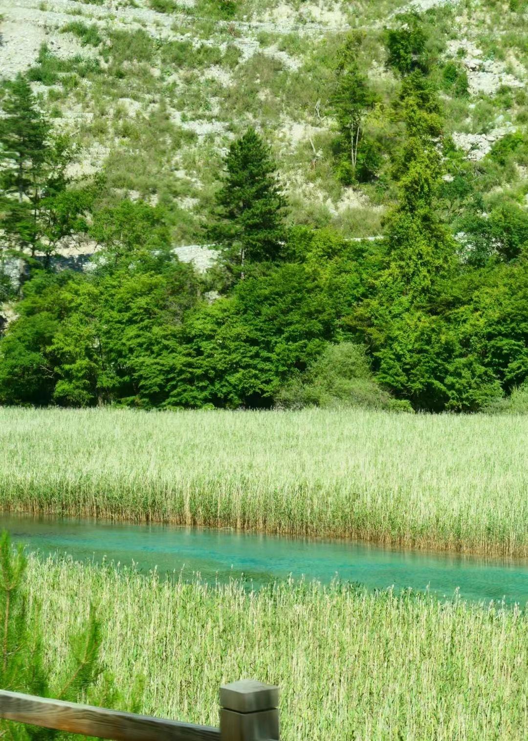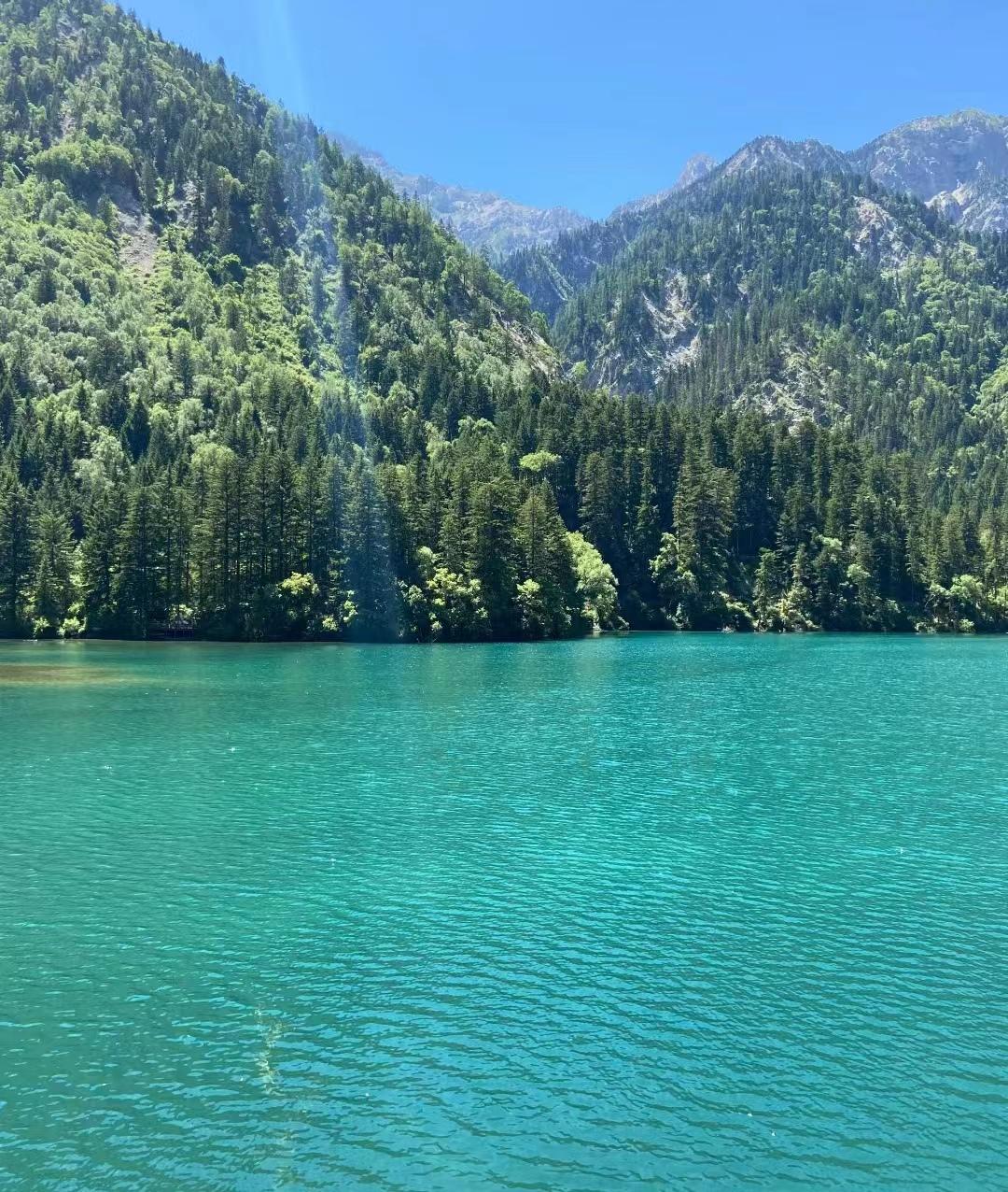 我看见了蓝宝石一样的海子,有小石潭记那样皆若空游无所依的小鱼群,有很久很久以前的参天大树,还有置身森林里听到令人无比放松的大自然的声音,比如泠泠作响的水,婉转动听的鸟,很多形容词在它面前都黯然失色了。