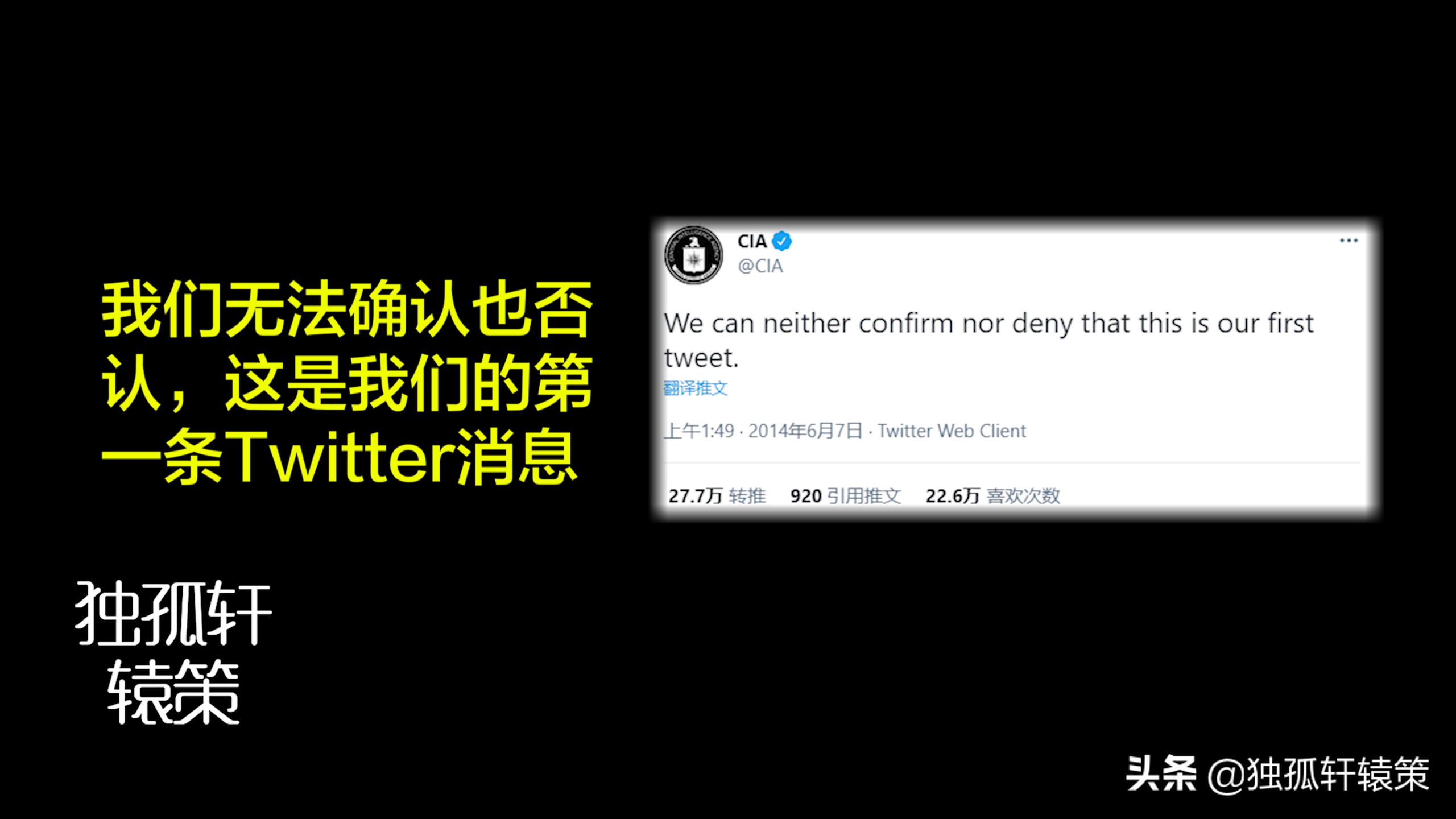 所以如果要说美国哪个机构是对UFO了解最深的,那cia一定是其中之一,但是如果你看看cia在2014年发布的第一条Twitter...