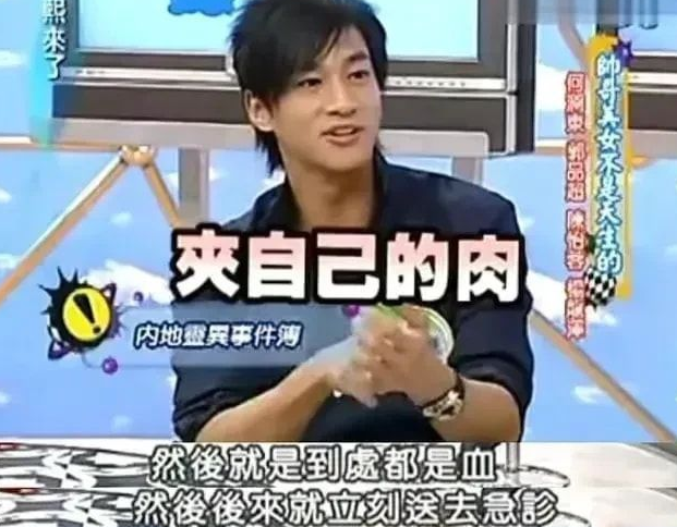 何润东在《康熙来了》里爆料,自己在内地某影视城拍戏时,遇到了一件很奇怪的事。据说当时有一位女演员突然拒绝拍夜戏,独自一人回到酒店房间里,等到有人敲门打探情况时,却发现她在拿指甲剪拼命地夹自己的肉。