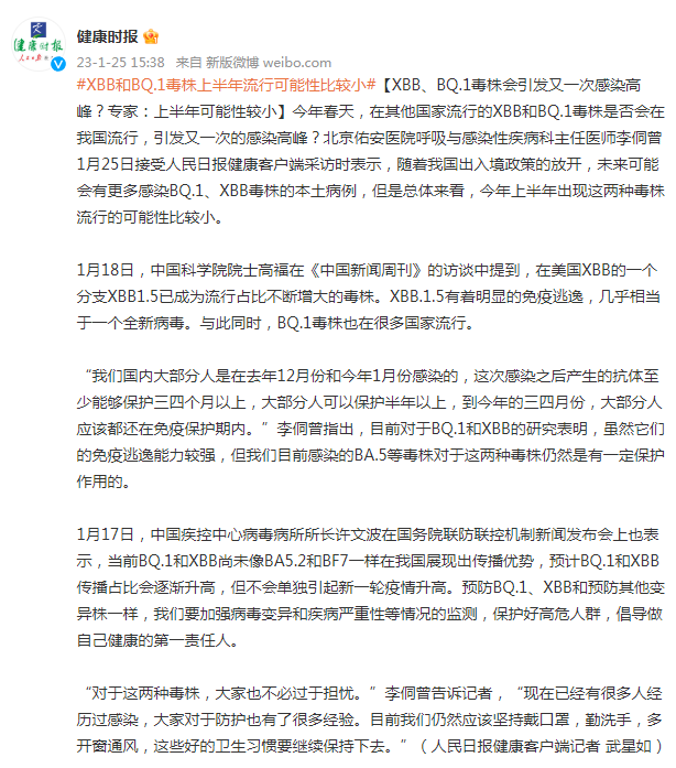 XBB会引发又一次感染高峰?专家回应