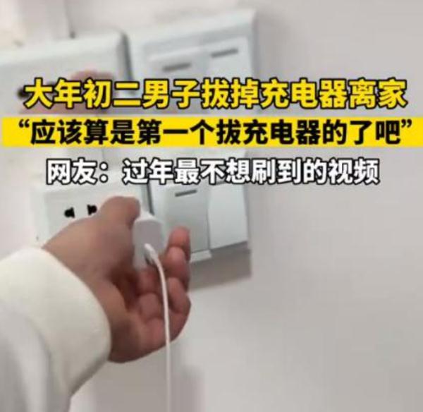 大年初二男子拔掉充电器离家(离家拔充电器的视频)